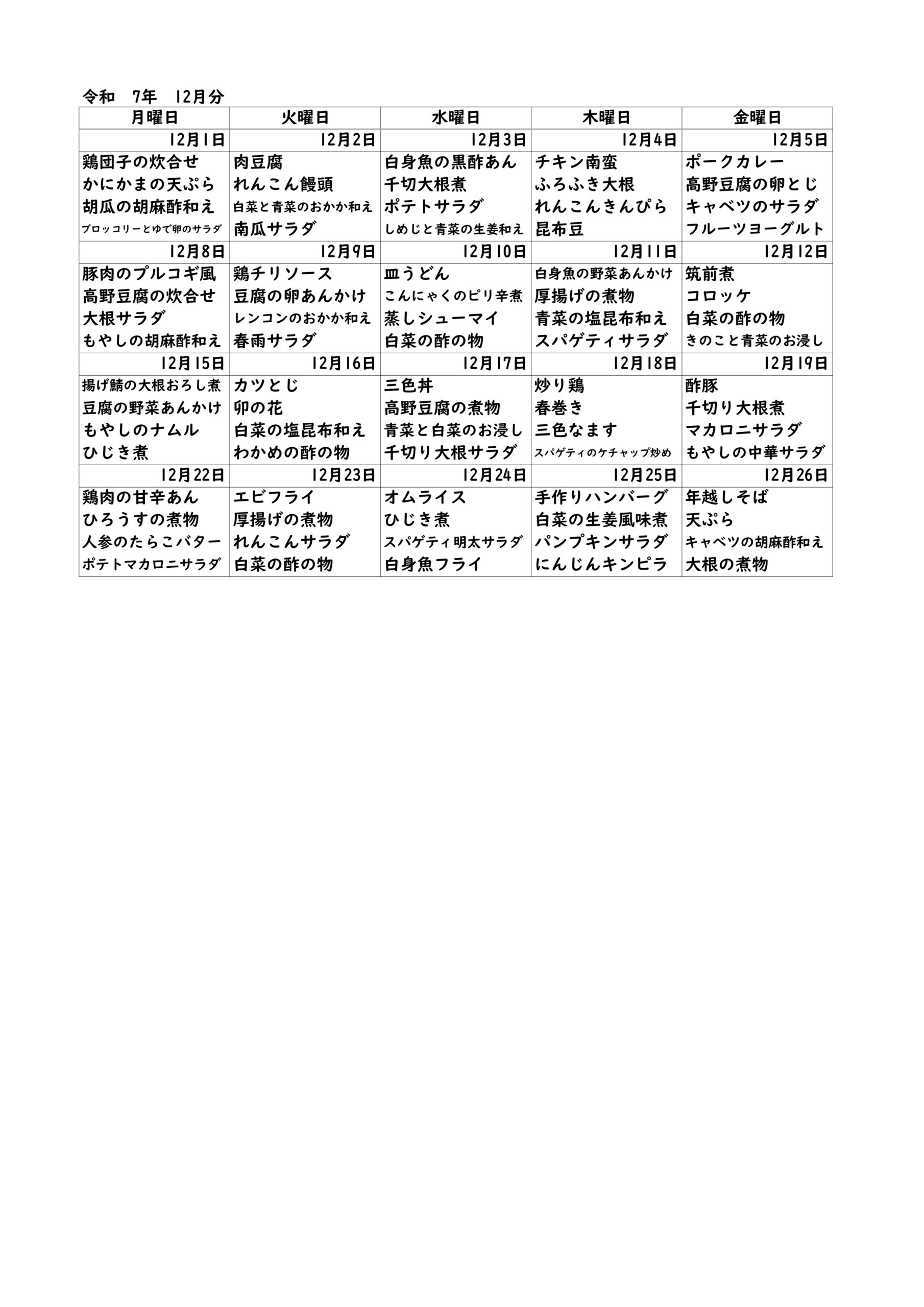 (ex.夏季…冷やしうどん 冬季…卵あんかけうどん、かき揚げうどん)