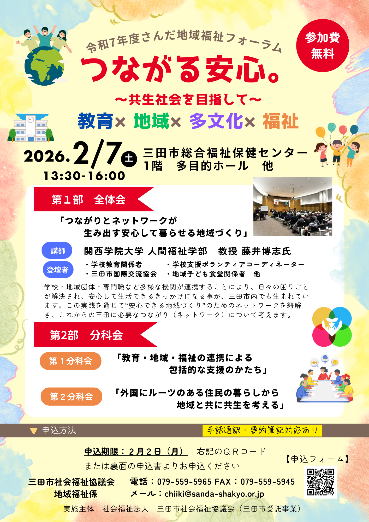 🌈さんだ地域福祉フォーラム『つながる安心。~共生社会を目指して~ 教育×地域×多文化×福祉』🌈