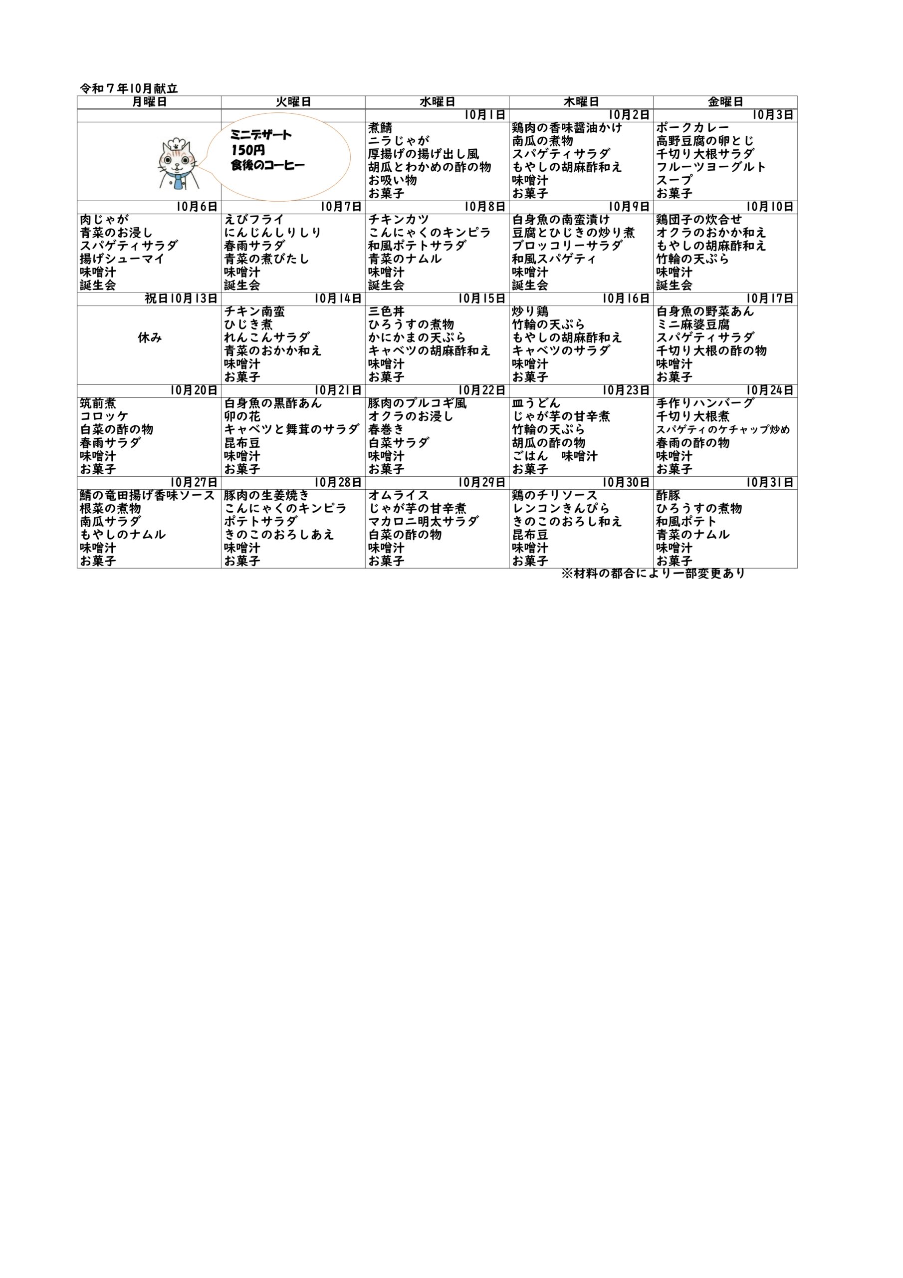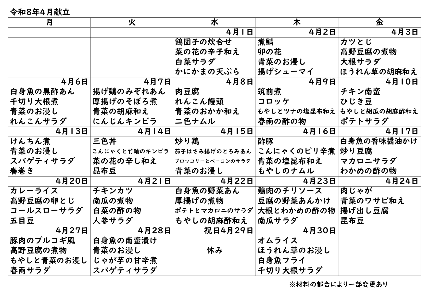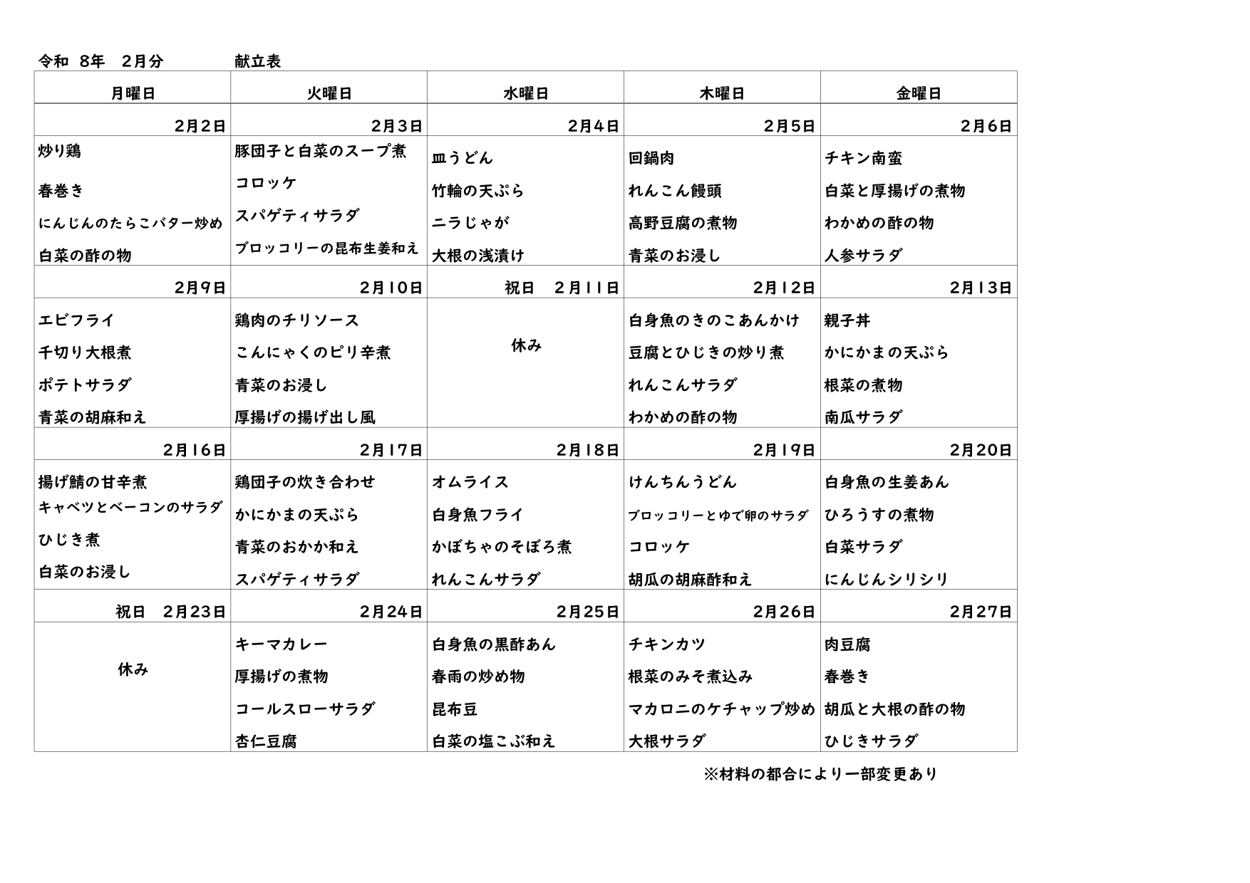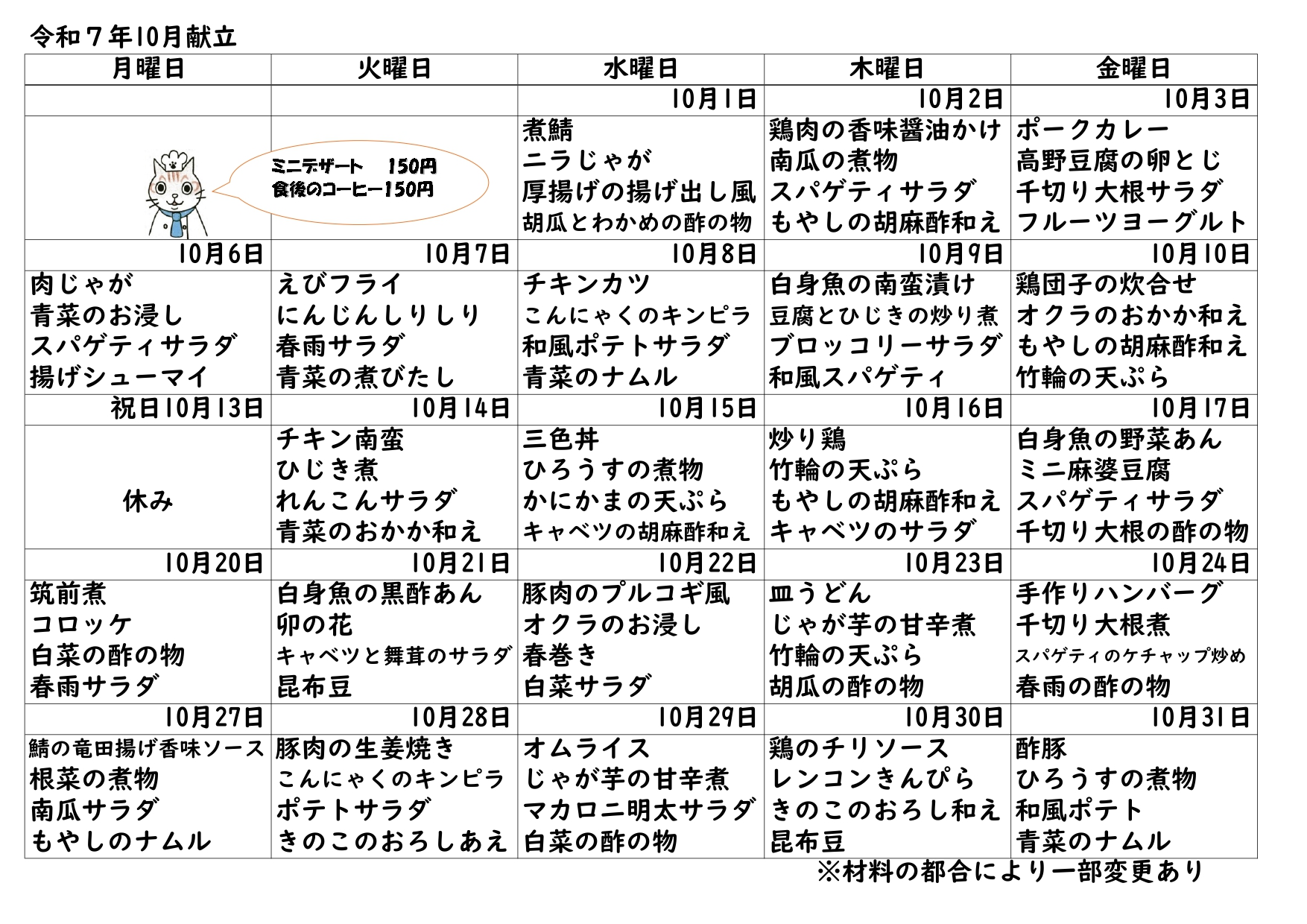 (ex.夏季…冷やしうどん 冬季…卵あんかけうどん、かき揚げうどん)