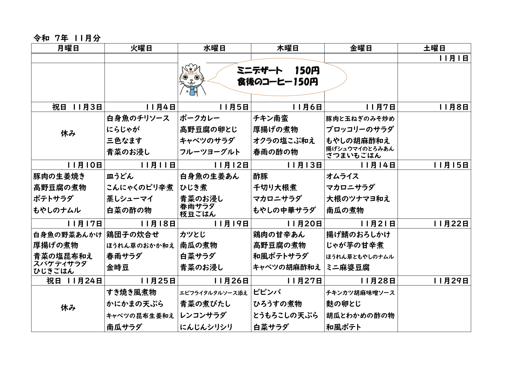 11時30分から提供、売切れ次第終了。(食後のコーヒーは +150円)