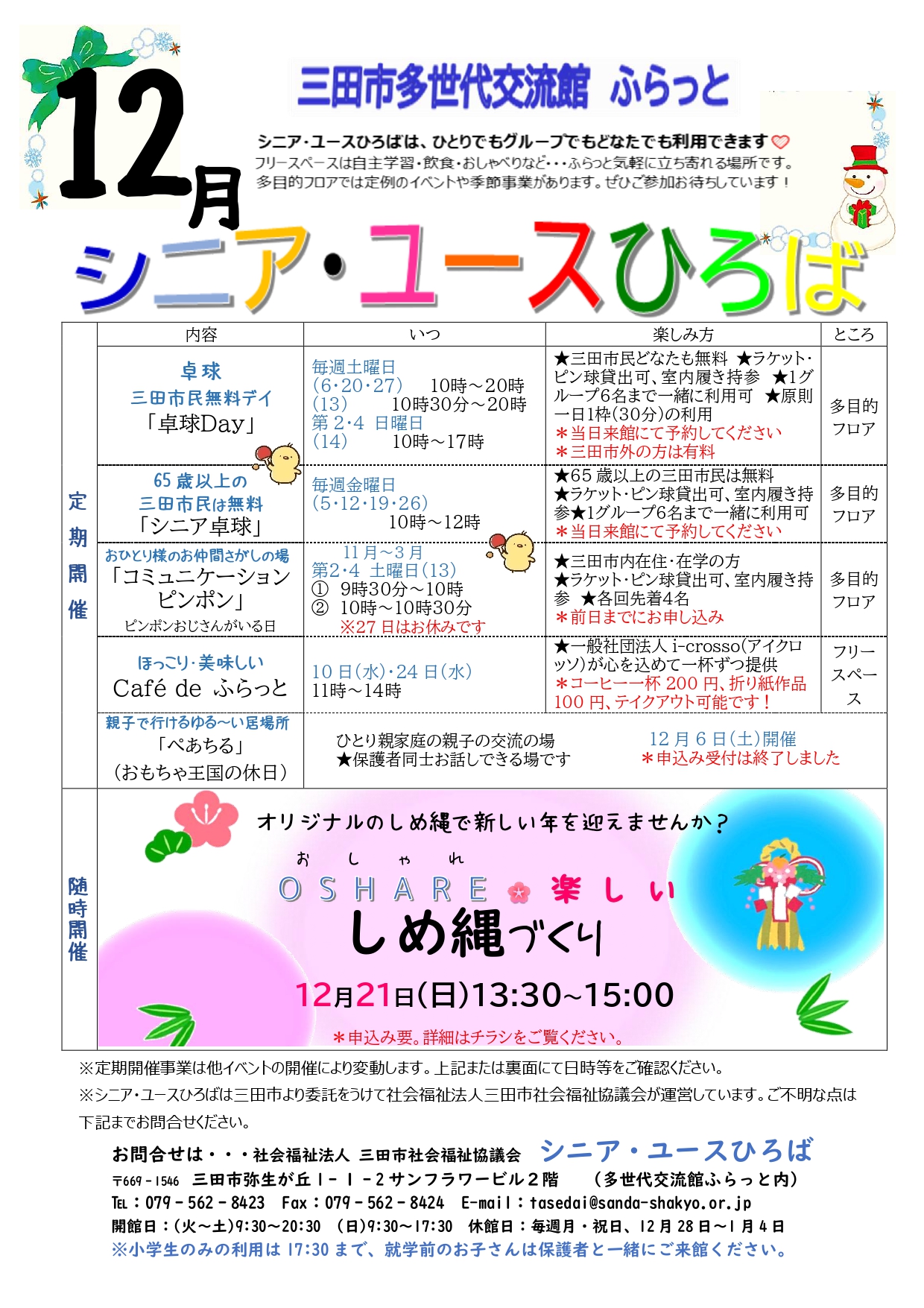 - 地域福祉課 多世代交流係 シニア・ユースひろば
