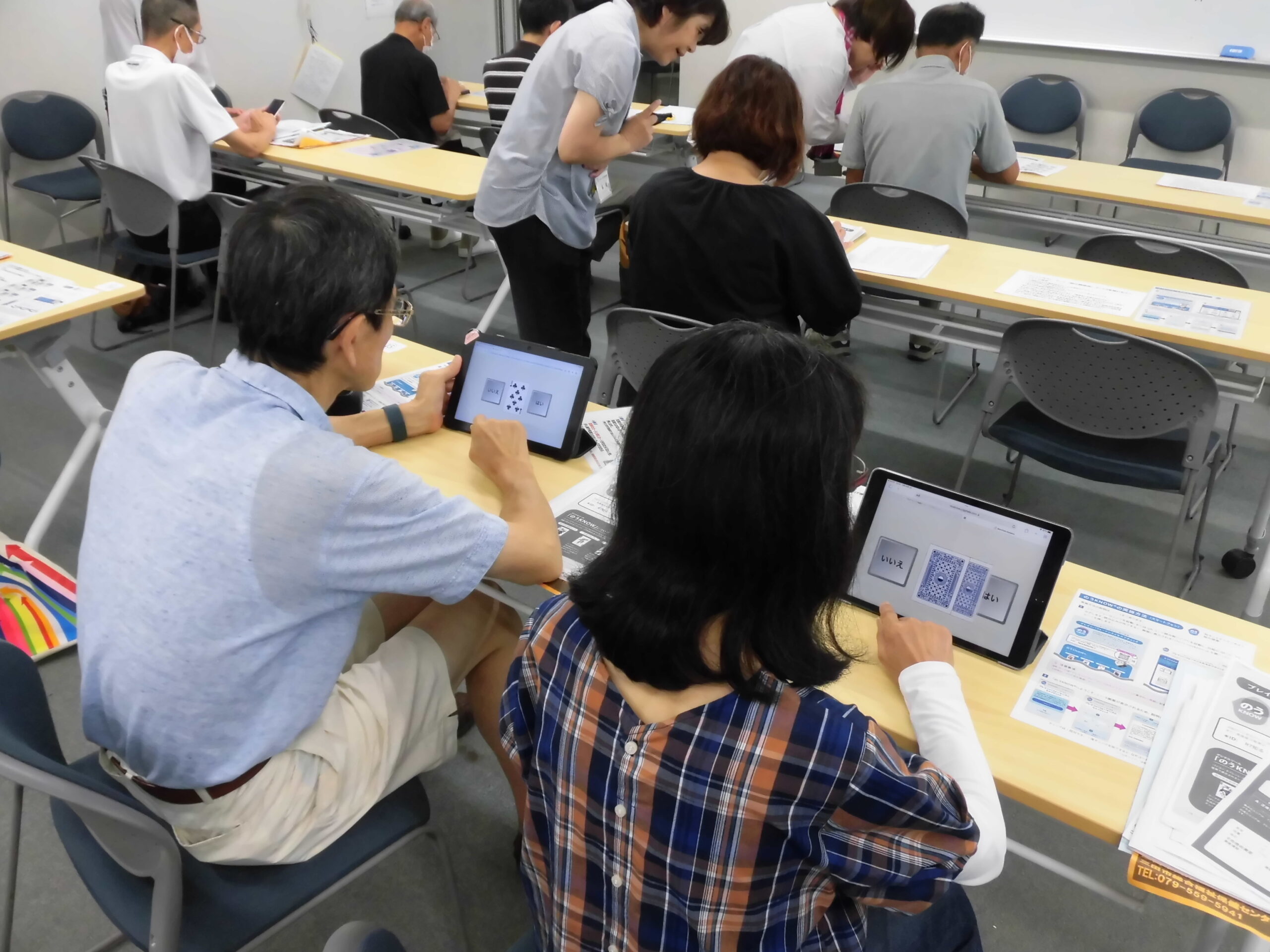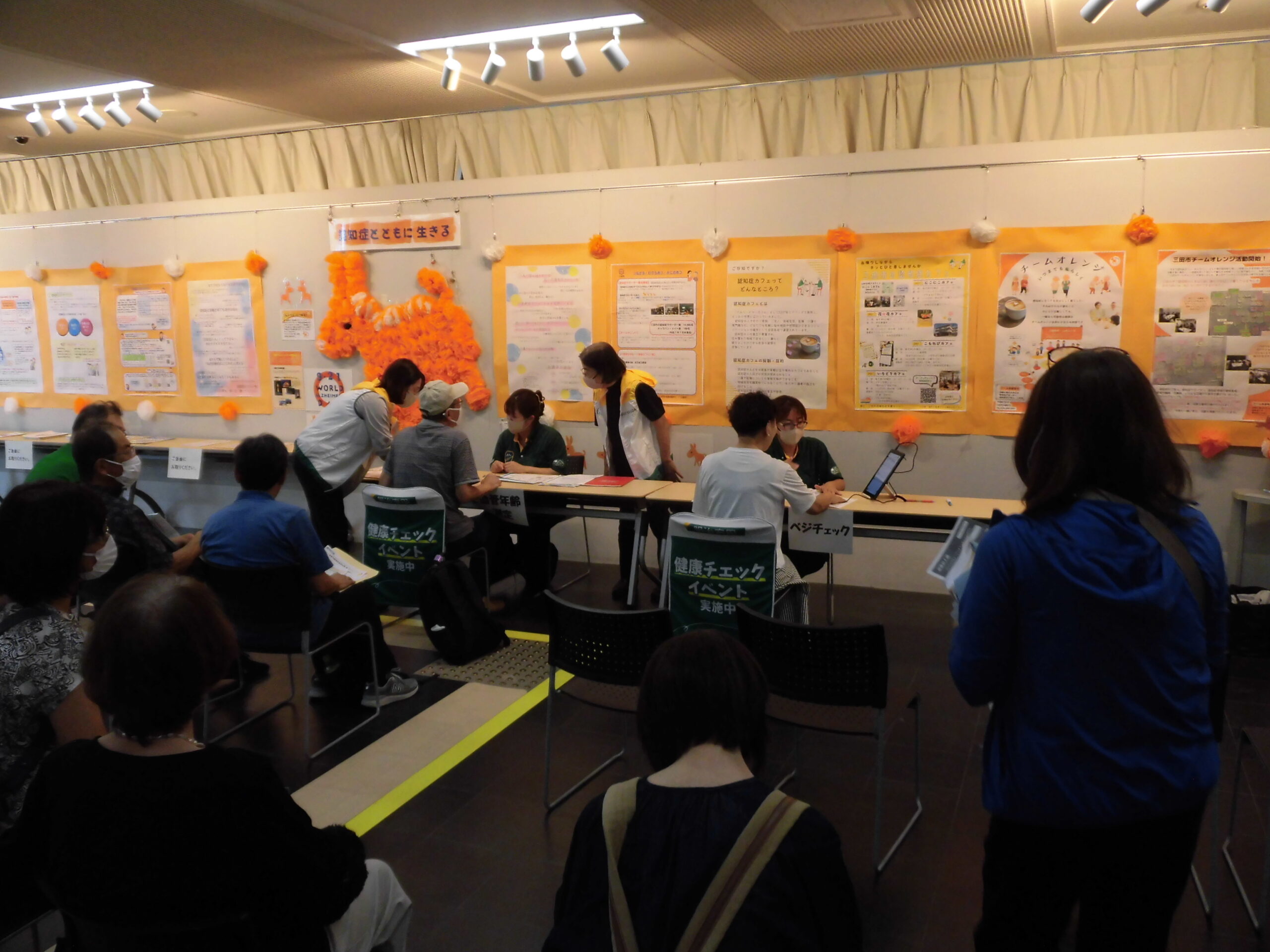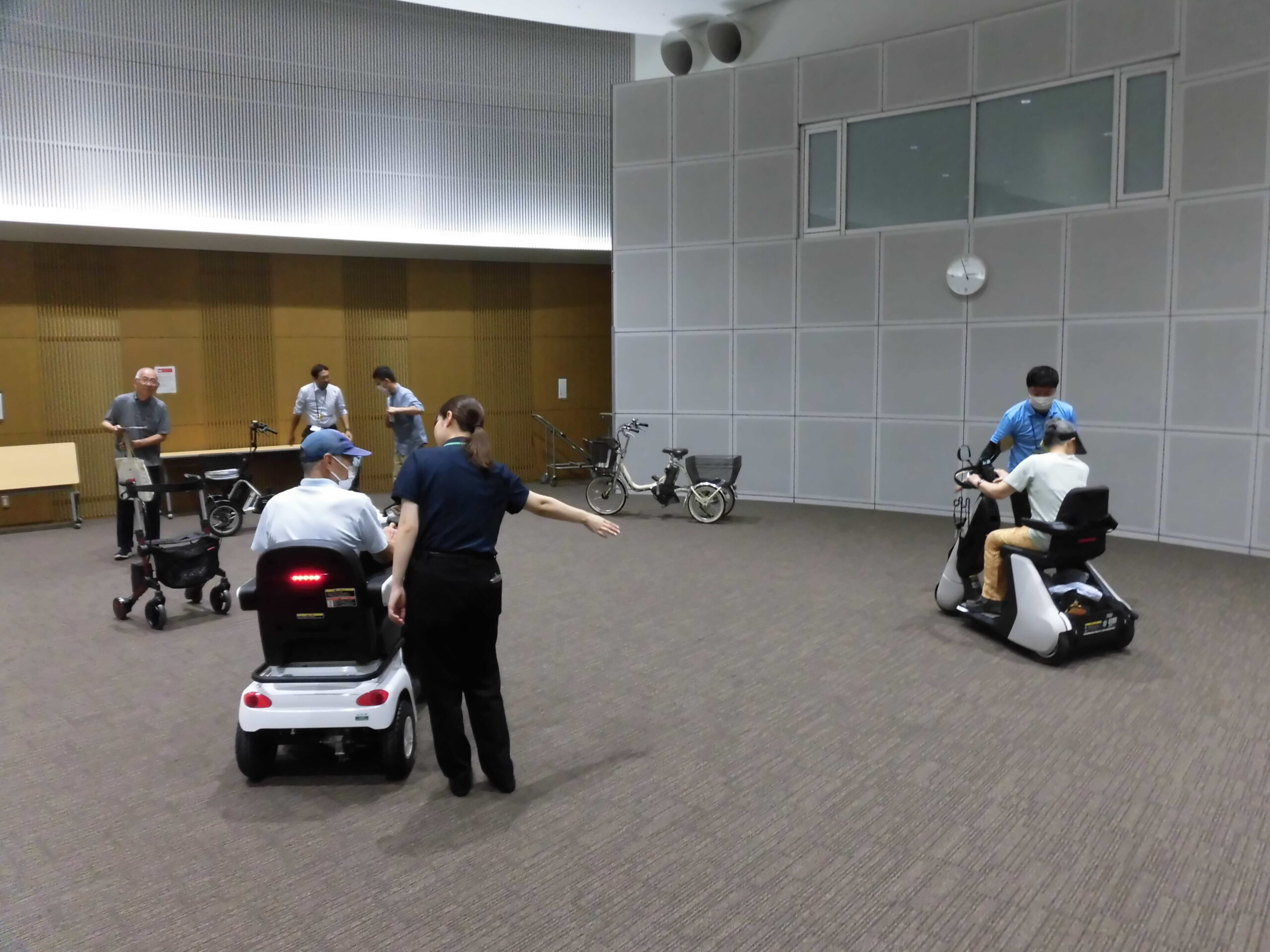 次に、『自分の脳と体を知ろう!体験会』として、兵庫県作業療法士会 自動車運転支援委員会の皆さまによる体の測定、イン・ザ・ルーム三田店様にご協力いただき、シニアカー&電動自転車試乗体験会、明治安田生命保険相互会社様にご協力いただき「デジタル健康測定(血管年齢測定・ベジチェック)」、認知症地域支援推進委員による「スマホde脳の健康チェック」を実施。
