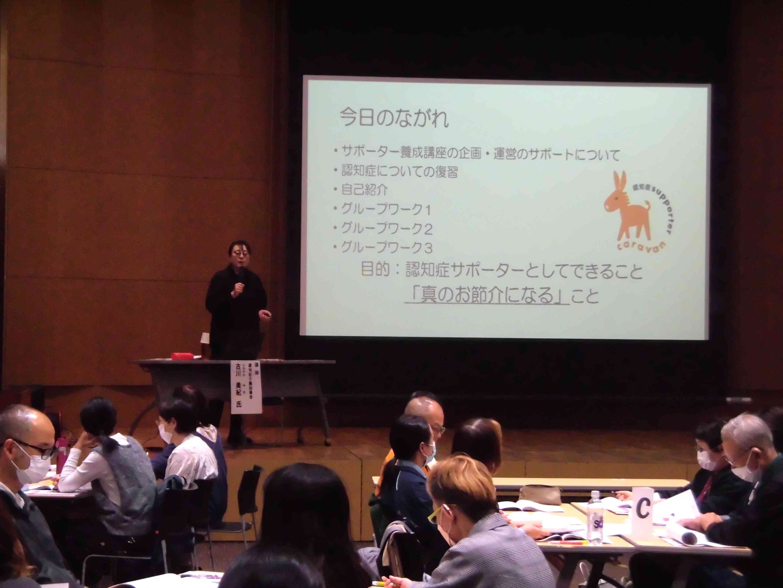 「認知症サポーター養成講座」の講師役を務めるキャラバン・メイトの養成研修を、三田市総合福祉保健センターで開催しました。