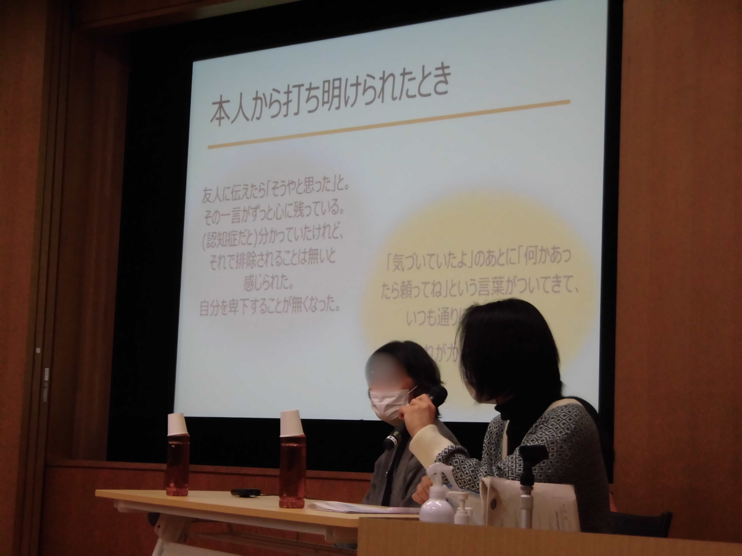 今年度から本格的にスタートしたチームオレンジとはどういうものかをお伝えした後に、認知症の方ご本人と認知症と診断される前からずっと地域活動などで一緒に活動されていた方のお話しを、パネルディスカッション形式でお聞きしました。