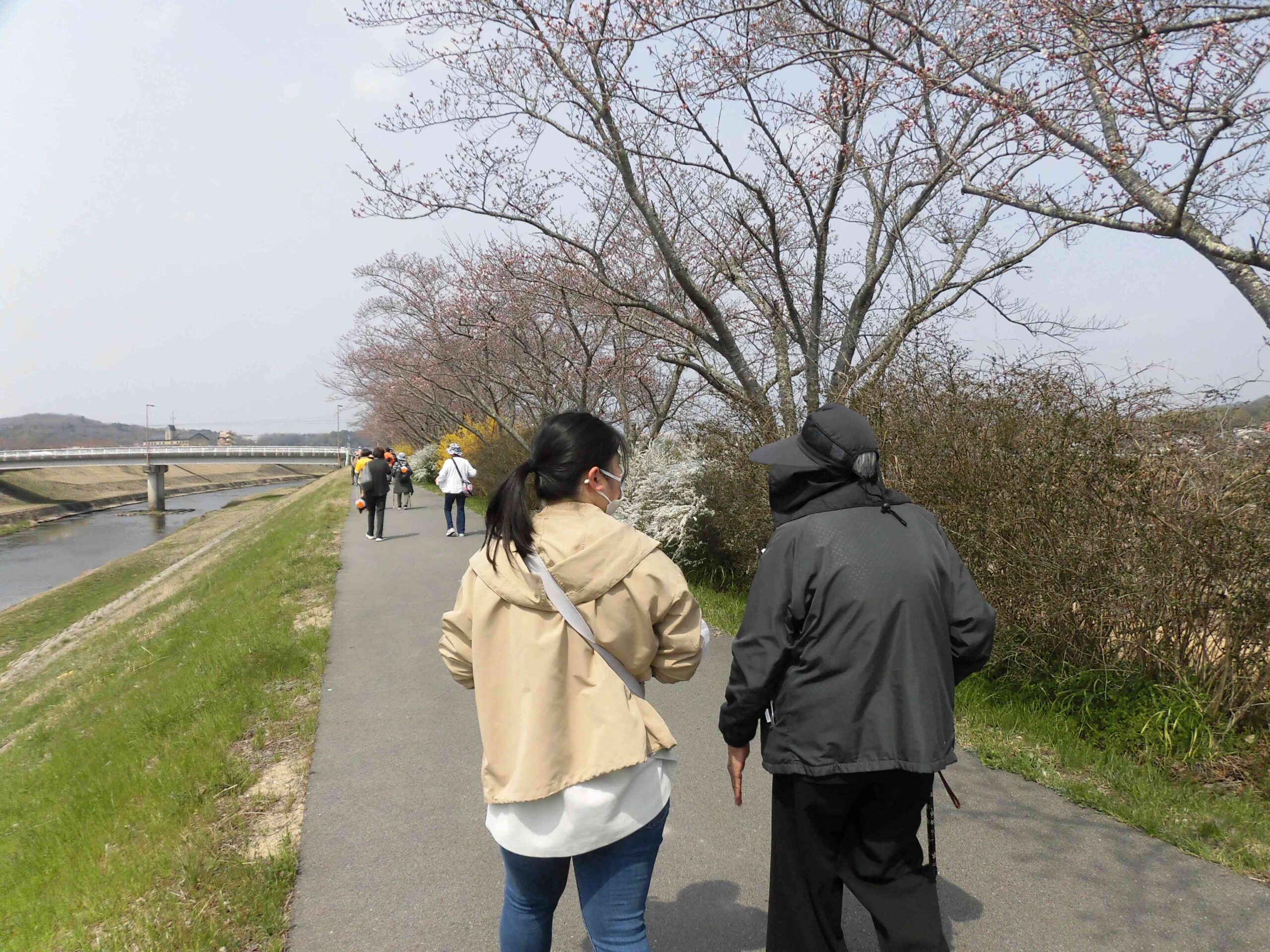 認知症の方やそのご家族、一般の方など、33名が3グループに分かれて、お日様の元ゆっくりお話ししながら武庫川沿いを歩きました。